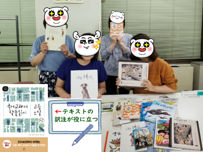後半は、好きな本を選んで読んでいただくのですが、私のお薦めした権正生先生の『엄마 까투리』(雉の母さん)を読んでいたYさん。さっき『강아지똥』では、「내려앉다」は、鳥が地上に舞い降りる様子だったのに今度は違う意味になっていると。