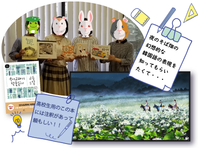 後半の自由読書時間には、大邱の수성못を扱った絵本『수성못』が話題になり、12月渡韓予定のNさんが時間があれば訪れていみたいと言っていたくらい気に入っていただけました。この本は、教保文庫では注文できずチェッコリでのみ購入できます。
